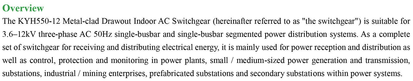 KYH550-12 Armored Removable Indoor AC Metal Switchgear