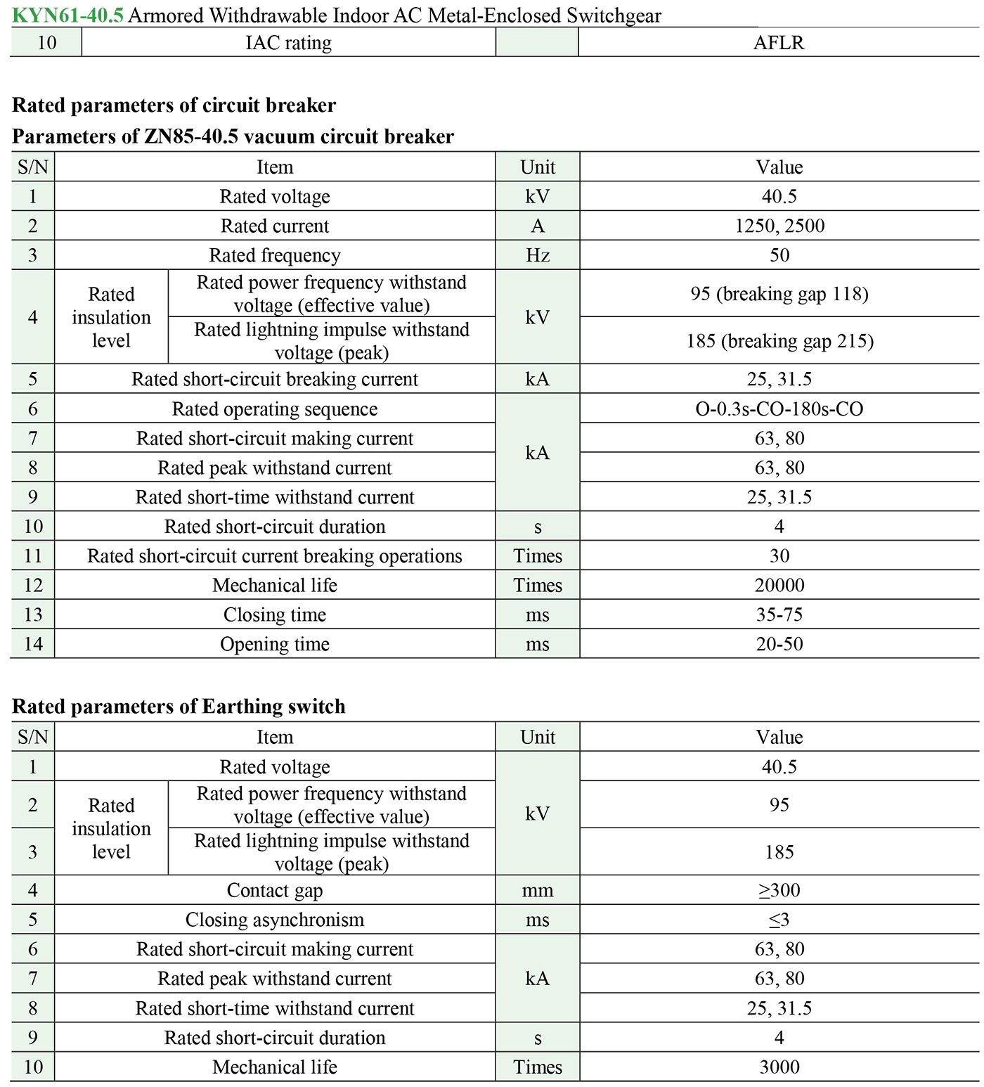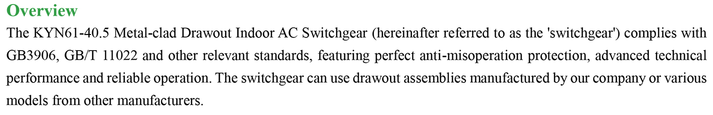 KYN61-40.5 Armored Removable Indoor AC Metal Switchgear