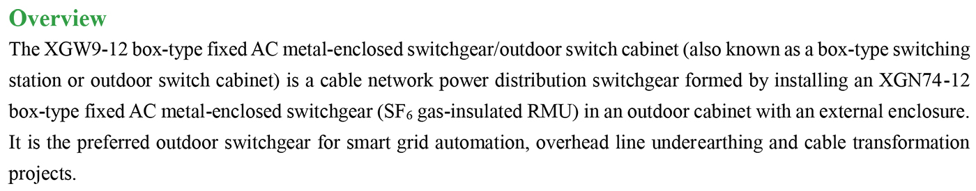 XGW9-12 Box type fixed AC metal enclosed switchgear/outdoor switchgear