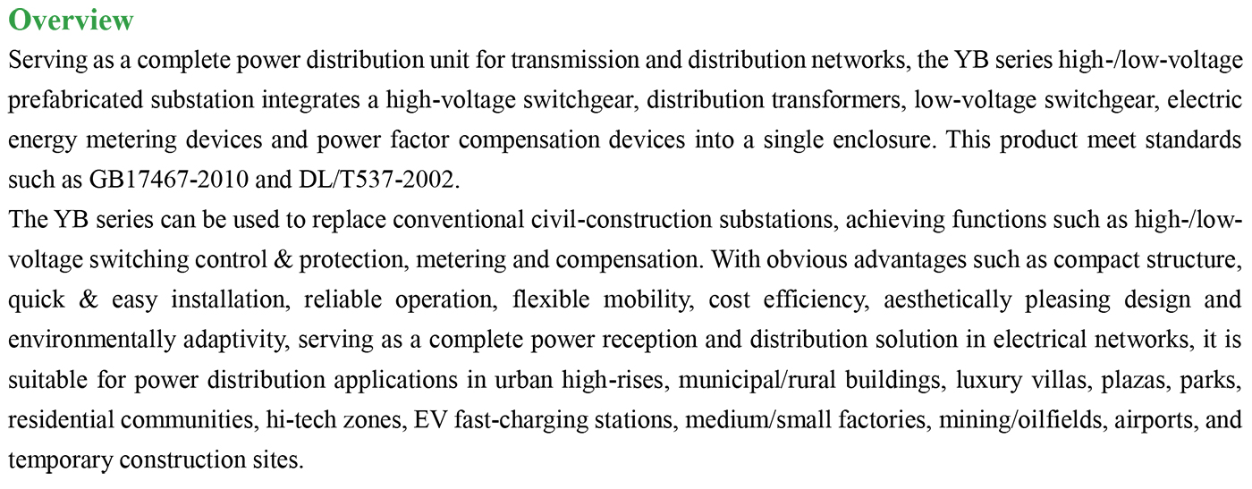 YB□-12 (European style) High voltage/low voltage prefabricated substation