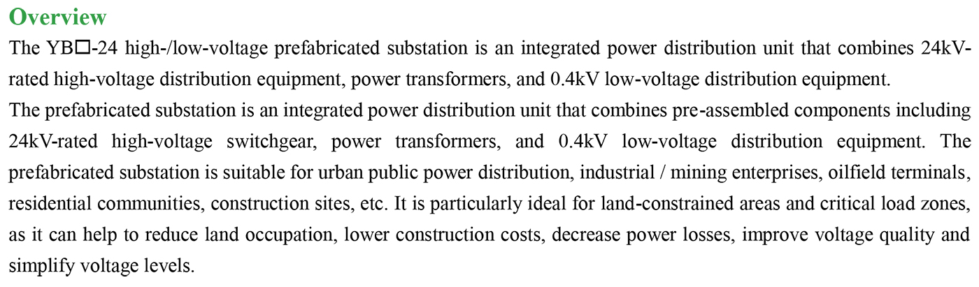 YB□-24 (European style) High voltage/low voltage prefabricated substation