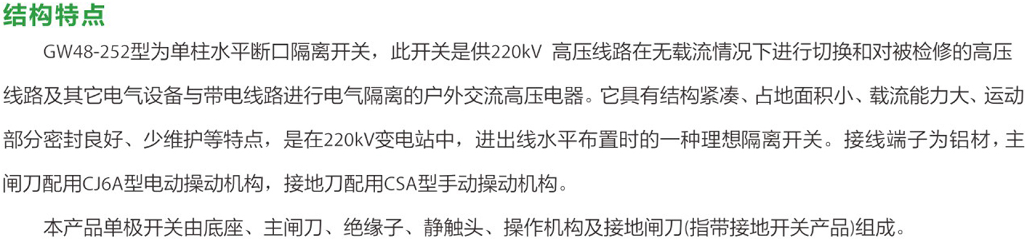 GW48-252 户外高压交流隔离开关(水平断口)
