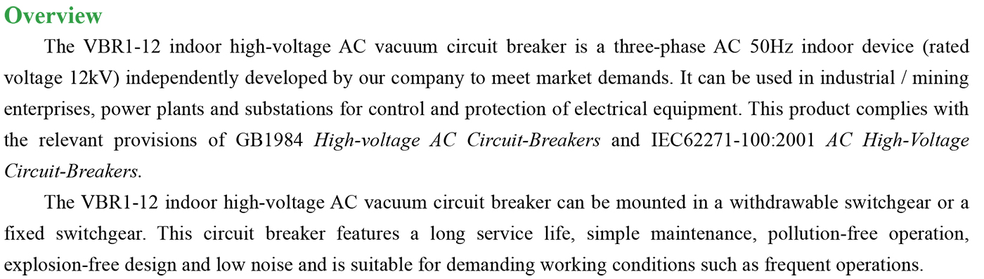 VBR1-12 Indoor high-voltage AC vacuum circuit breaker