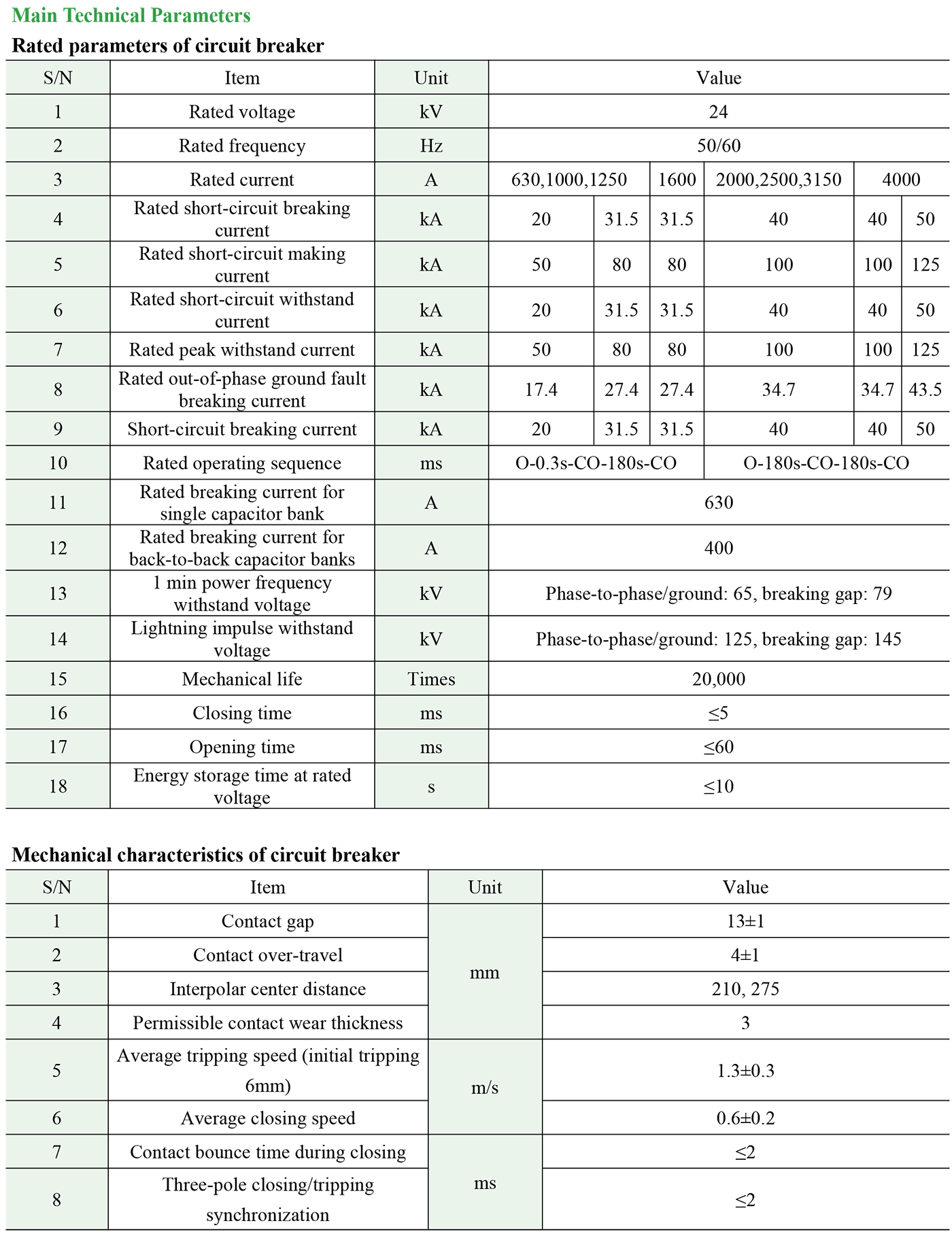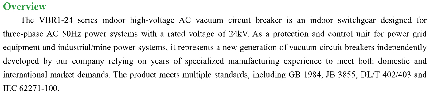 VBR1-24 Indoor high-voltage AC vacuum circuit breaker