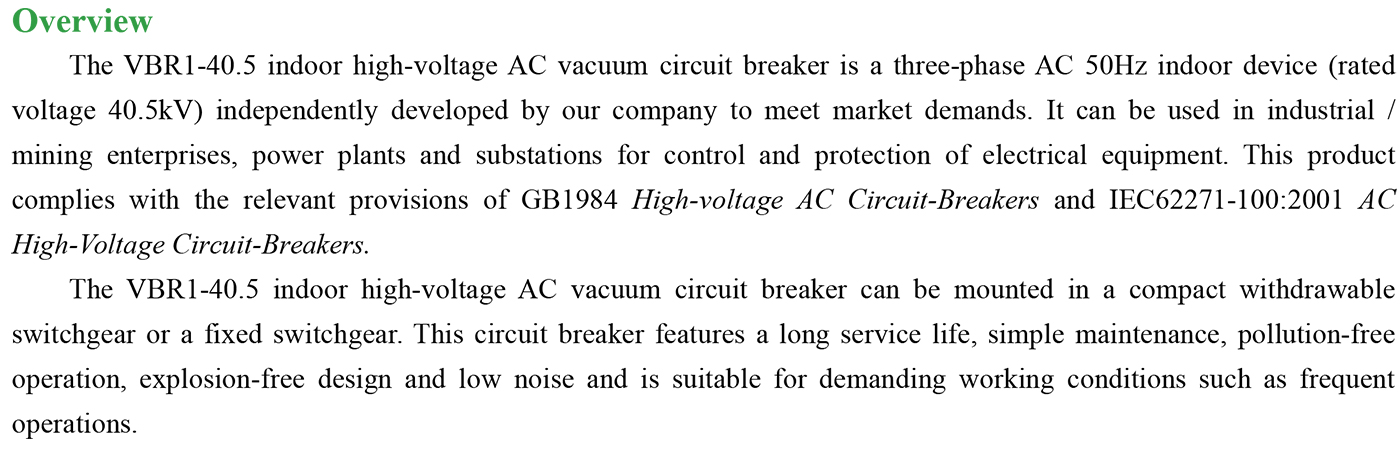 VBR1-40.5 Indoor high-voltage AC vacuum circuit breaker