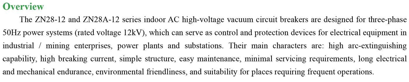ZN28-12、ZN28A-12 Indoor high-voltage AC vacuum circuit breaker