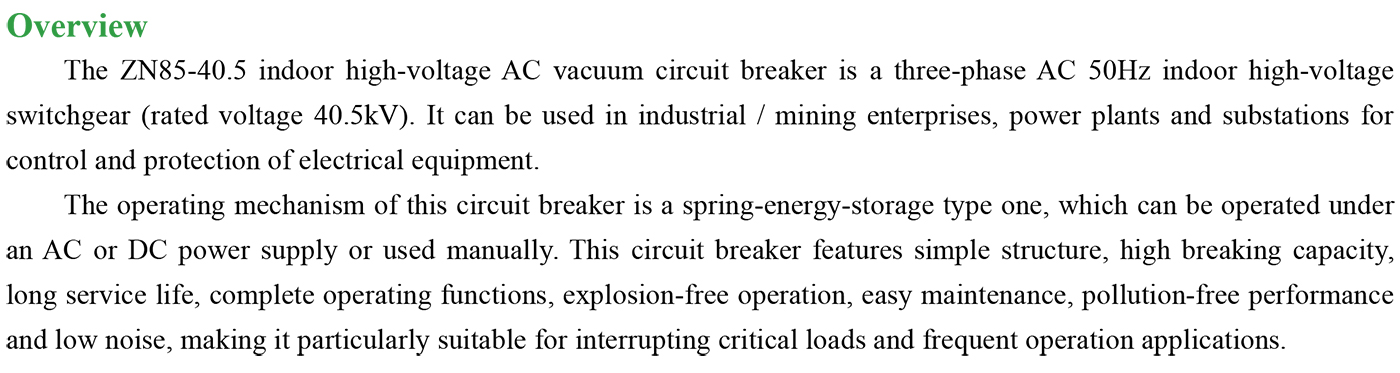 ZN85-40.5 Indoor high-voltage AC vacuum circuit breaker
