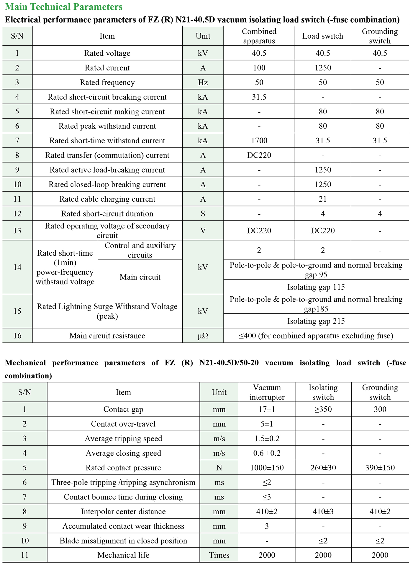 FZ(R)N21-40.5(D) Indoor high-voltage AC vacuum load switch fuse combination device
