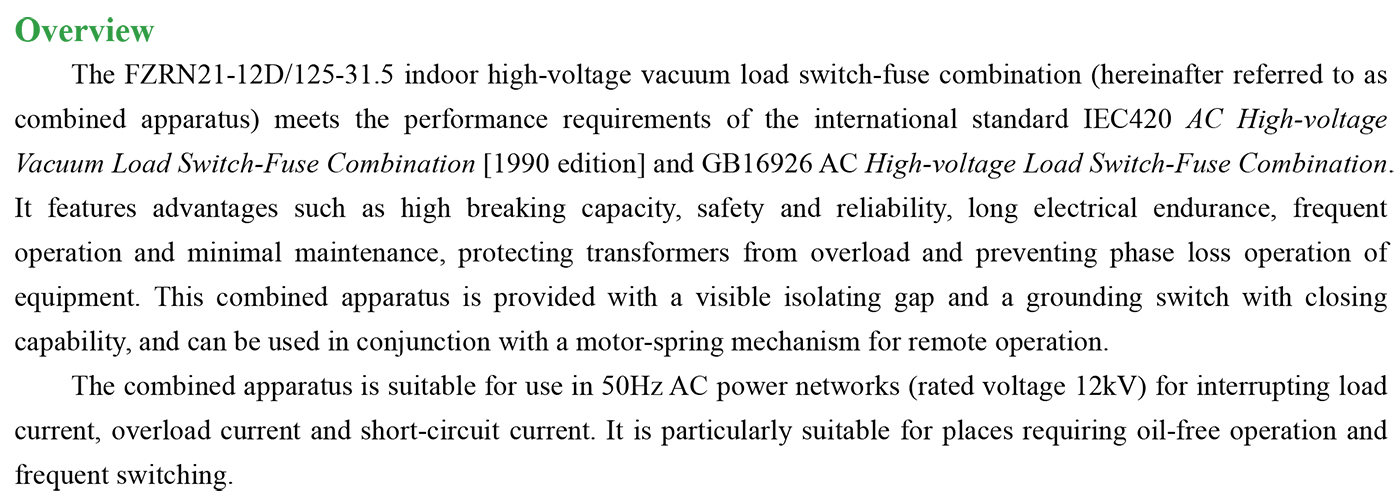 FZ(R)N21-12(D) Indoor high-voltage AC vacuum load switch fuse combination device