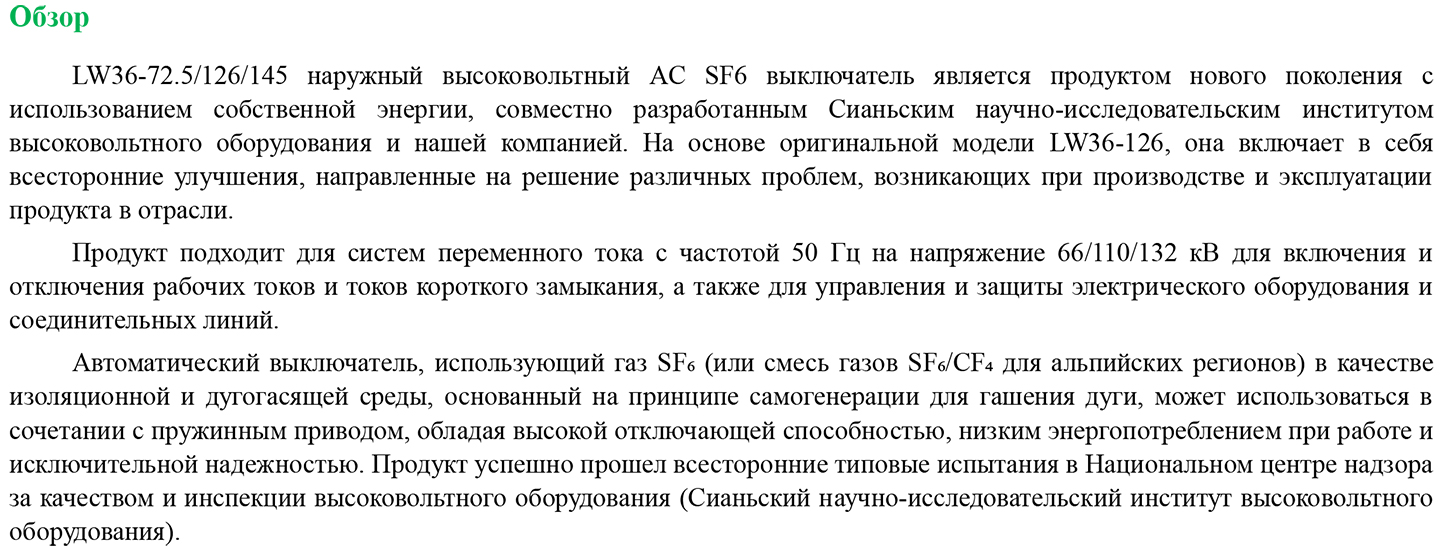 LW36-72.5/126/145 Высоковольтный выключатель переменного тока наружной установки с элегазом