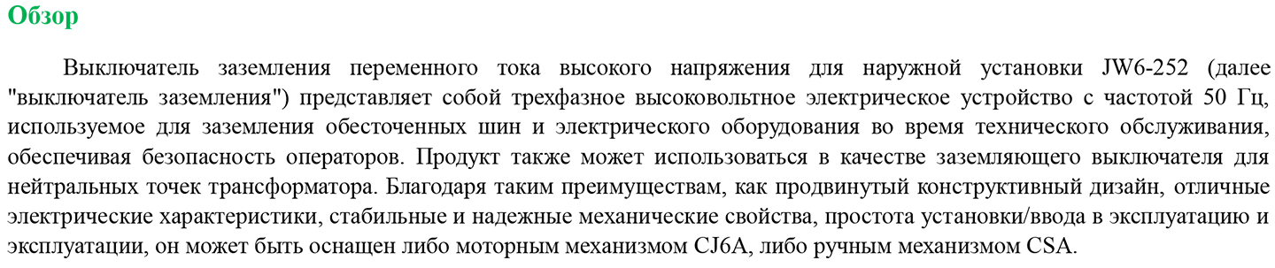 JW6-252 Заземляющий выключатель переменного тока наружной установки