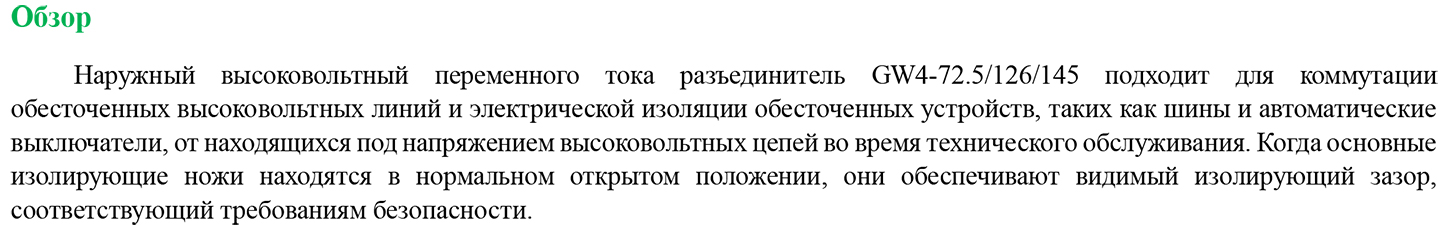 GW4-72.5/126/145 Высоковольтный разъединитель переменного тока наружной установки