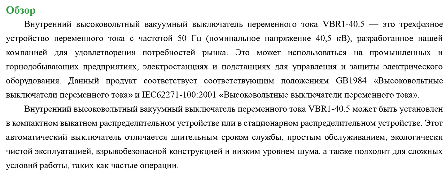VBR1-40.5 Высоковольтный вакуумный выключатель переменного тока для внутренней установки