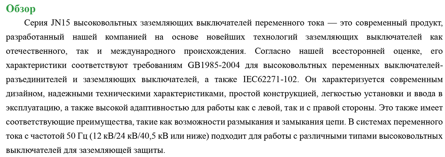 JN15(A)-12、24、40.5 Высоковольтный заземляющий выключатель переменного тока для внутренней установки