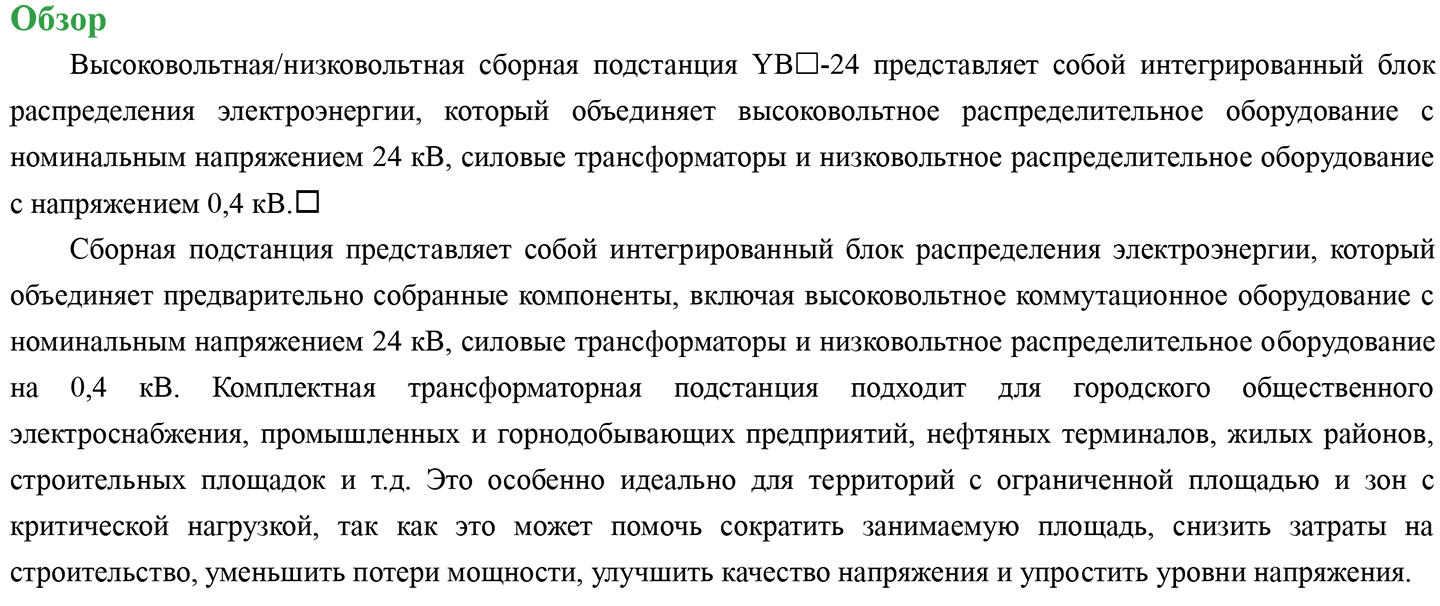 YB□-24 (欧式) Комплектные подстанции низкого напряжения/высокого напряжения