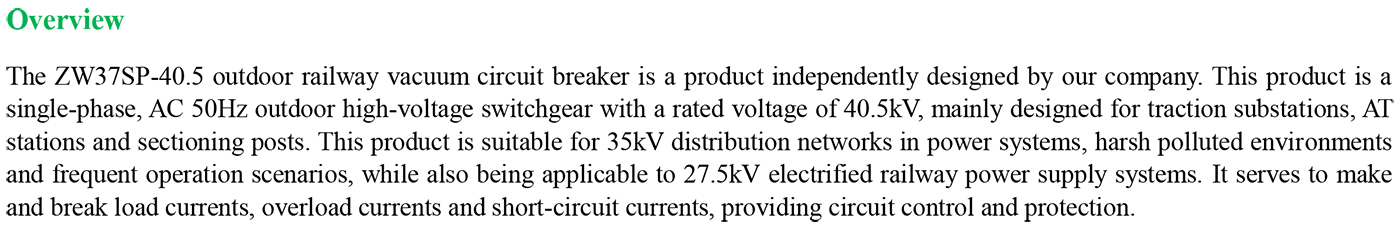 ZW37SP-40.5 Single pole vacuum circuit breaker for outdoor railways