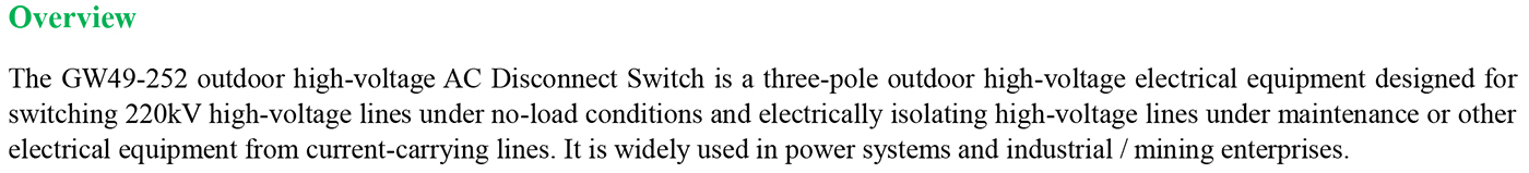GW49-252 Outdoor high-voltage AC isolation switch (vertical break)