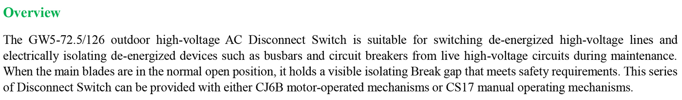 GW5-72.5/126 Outdoor high-voltage AC isolation switch