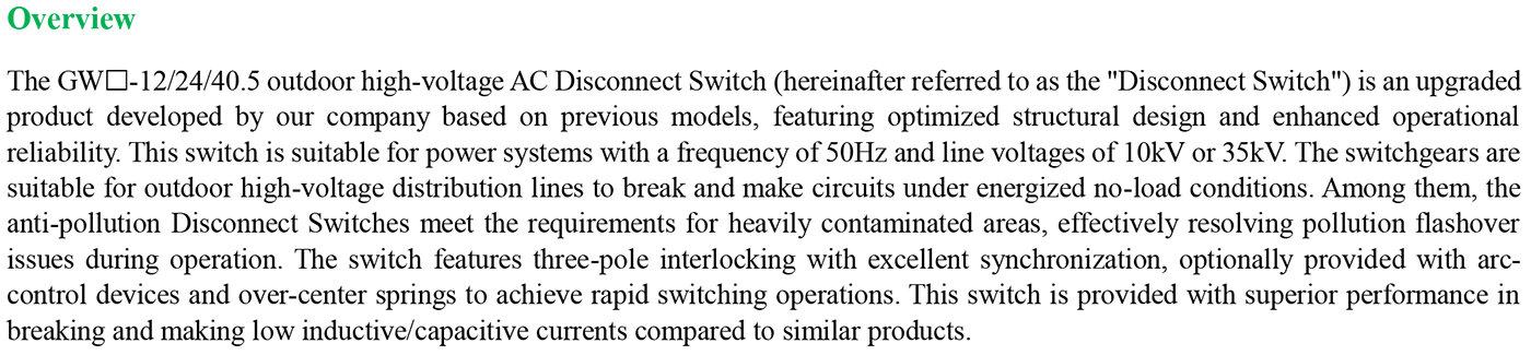GW□-12/40.5 Outdoor high-voltage AC isolation switch