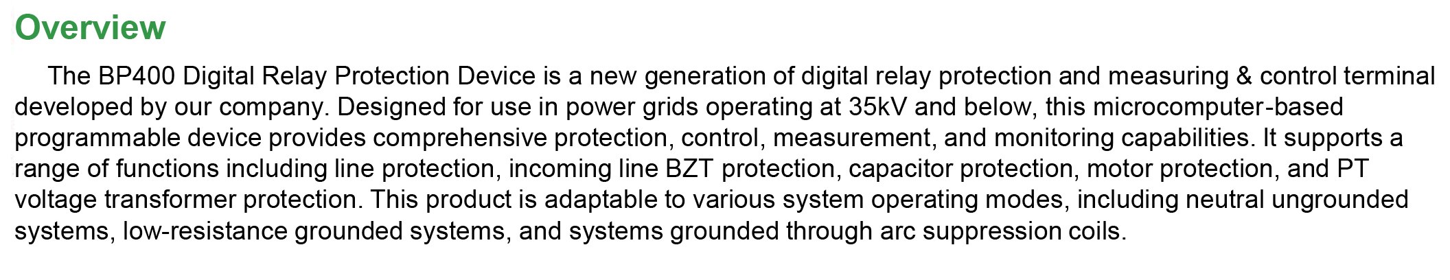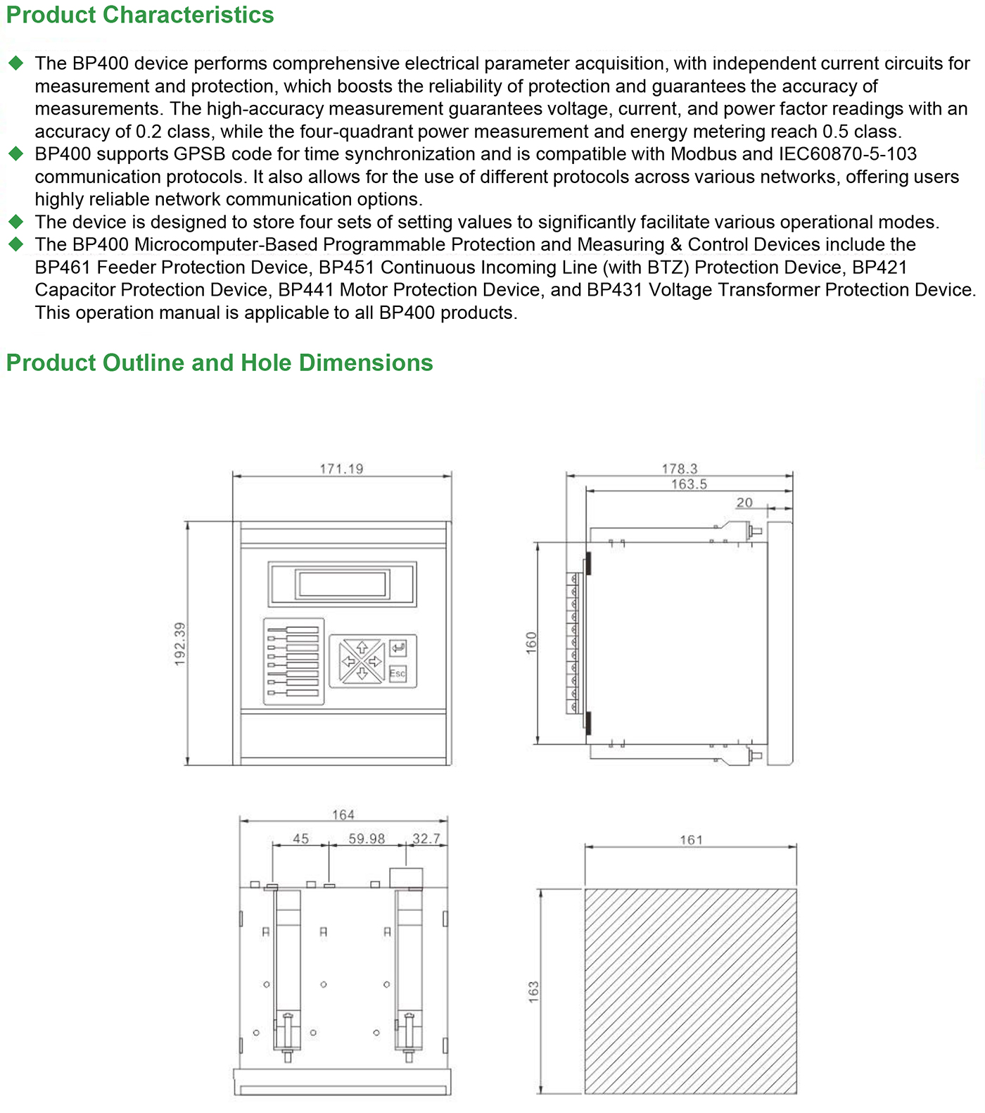 BP400 Microcomputer programmable protection and measurement device